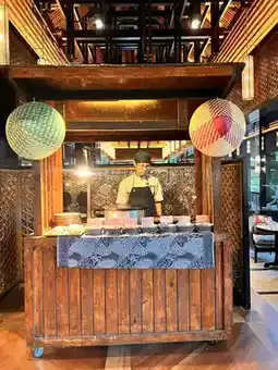 The environment is like dining in the jungle, with indoor and outdoor seating areas.