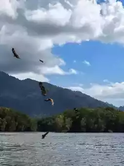 One of the highlights is watching majestic Brahminy kites and white-bellied sea eagles swoop down to catch fish. This part of the tour is a favorite for photographers and nature lovers.