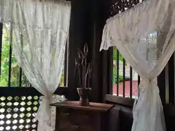 Kota Mahsuri is about a 30-minute drive from Chenang, whether by motorcycle or car. Visitors need to pay RM 20 for entry. There are several eateries, souvenir shops, and clothing rental stores for taking photos. Mahsuri's Tomb is open from 9:00 AM to 5:00 PM. Behind the tomb lies a vast expanse of beautiful green paddy fields with stunning views of mountains and blue skies.