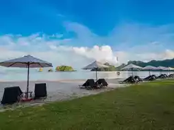 The spacious, elegantly designed rooms blend modern comforts with traditional Malaysian touches, featuring private balconies overlooking lush gardens or the sea. The private beach is a highlight—powdery white sand and clear waters create a postcard-perfect setting.