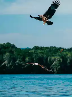 Watch in awe as dozens of majestic sea eagles swoop down just meters from your boat! A wild and unforgettable moment 🦅