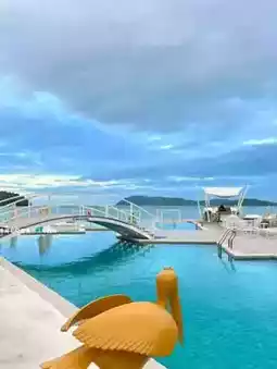 The overall design of the hotel is simple white, with some Tiffany blue. There is also a beautiful garden in the hotel and there are cute rabbits. It seems like walking into Alice's Wonderland. I like the pool bar next to the swimming pool. Everyone will soak in the water and drink here. There will be DJs playing songs here near the evening. It is very happy.