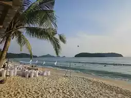 Pantai Tengah is actually less crowded than Pantai Cenang, which makes it perfect if you want a more relaxed vibe. The beach is long and wide, so there’s plenty of space to just chill, walk along the shoreline, or set up a picnic. You can also find a few cozy cafés, bars, and restaurants nearby if you want to grab a bite while enjoying the sea breeze. And when the sun starts to set, the whole place turns into this magical scene with golden light reflecting off the water — perfect for photos or just sitting quietly to soak it all in.