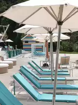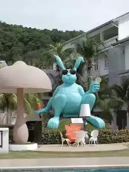 The iconic red giant bunny greeted me near the infinity pool 🐰 — a quirky touch that totally sets the tone for the fun, youthful energy here. The pool area is a whole vibe with DJ music, vibrant loungers, and cocktails served all day 🍹🎶. I sipped on a chilled mojito while watching the waves roll in — talk about vacation mode ON! 🏖️