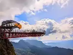 Skywalking! Walk on the curved suspension bridge hanging between two mountain peaks. It's thrilling and fun! Encourage the kids to spot eagles soaring in the sky. The view is spectacular, making it a perfect spot for a family photo!