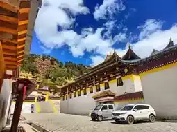 Langmusi is divided into two parts, one is the Langmusi Temple in Dachang, Sichuan, also known as Gelug Temple; the other is the temple in Gansu, also known as Saichi Temple. The two temples overlook each other across a stream.