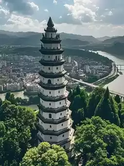 White Cloud Pagoda Viewing Platform: Capture panoramic views of Langzhong.
