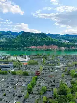 Zhongtian Tower🏯: Known as "Langzhong's #1 Feng Shui Tower." Climb up to see the town's streets laid out in a grid pattern, with blue-tiled roofs and white walls forming a picturesque scroll🖼️.