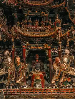 Gods and Buddhas everywhere, paradise, palaces and pagodas, carved beams and painted buildings