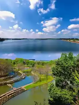 Time Train: Tickets are CNY 30/person. The combined train + animal farm ticket is only CNY 68/person. Get that one! The ride lasts about 20 minutes. The metasequoia trees are still lush green. Riding the mini-train through them feels like entering a secret forest. The scenery along the way, including the art museum, auditorium, tea plantation, and lake, is truly healing! The train departs from the lakeside. The blue lake shimmers like the ocean, making for fantastic photos!
