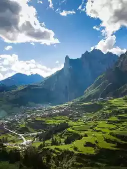 The stunning scenery and Tibetan wooden houses built along the mountains offer a chance to experience the simple rural life.