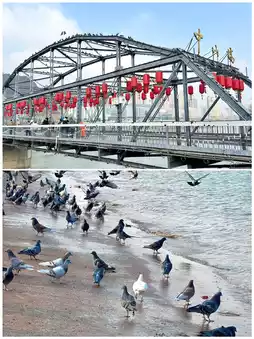 📍 Zhongshan Bridge: A landmark building in Lanzhou with a history of over a hundred years. In January, the Yellow River water is clear and cold, and the bridge spans both sides of the river. You can enjoy the magnificent scenery of the Yellow River on the bridge, feel the majestic momentum of the river, and appreciate the unique charm of Lanzhou.