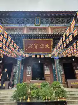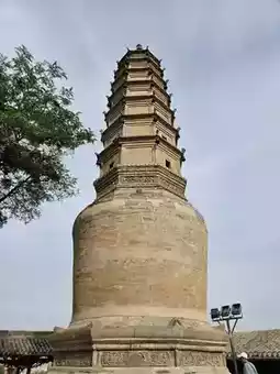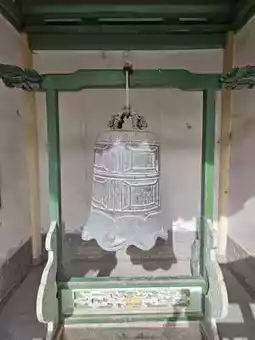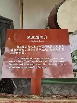 The temple complex includes a 17-meter-high white pagoda with seven stories and eight sides, adorned with carved Buddhas and iron bells. It once housed three treasures: an elephant-hide drum, a bronze bell, and a Chinese redbud tree, though only the drum and bell remain today