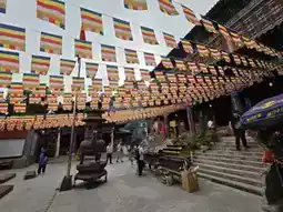 Scenic climb through lush greenery and traditional architecture