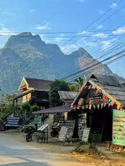 Small guesthouses and cafes line the riverbank, offering quiet spots to read, sip coffee, or just take in the view. Evenings bring a cool breeze and the sound of crickets filling the air. Nong Khiaw is a place for slowing down, connecting with nature, and letting go of rush and noise. It captures the quiet, timeless beauty that makes northern Laos so special.