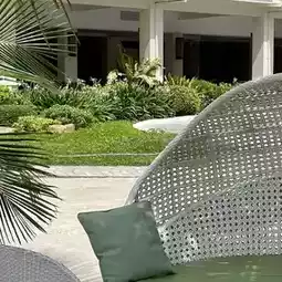 The outdoor pool is centrally located within the resort, and the vintage rattan furniture by the poolside creates a sophisticated and relaxed ambiance. Just steps away lies a private beach, offering a true escape from the city and a chance to unwind. 🏖️🌞