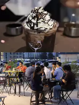 A very cool cafe in Lat Krabang area that uses a black theme throughout the shop.