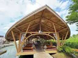 To get there, you can drive, or take the Airport Rail Link to Lat Krabang Station and then take a taxi or motorbike. The restaurant is open daily from 11:00 AM to 11:00 PM.