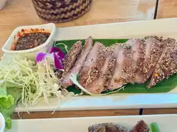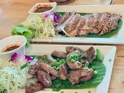 A beautiful restaurant with a great atmosphere and delicious Thai and Isaan food. Decorated with a resort feel and a relaxed atmosphere, the restaurant offers air-conditioned rooms. Located on Khum Klao Road.
