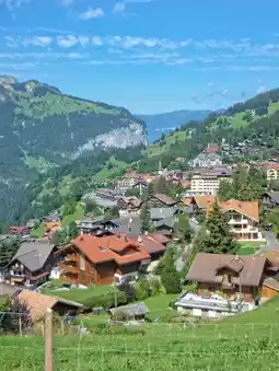 A small village nestled in a valley in Switzerland looks like something out of a fairy tale 🏔️🌸, surrounded by towering snow-capped mountains and over 70 waterfalls cascading down the cliffs. ⛰️💦 The sound of the waterfalls and the fresh scent of green grass makes you feel like you've been transported to another world. 🌿