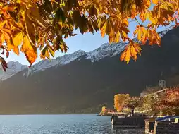 In a small valley surrounded by snowy mountains and trees changing colors, there is only the gentle sound of flowing water and the cool breeze rustling through golden leaves. Every step along this path feels like stepping into a painting—warm, simple, and filled with the romance of Switzerland. 💛