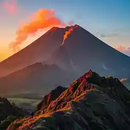 🌋 As the pre-dawn darkness begins to fade, embark on a journey towards an active volcano, capturing the mystical shimmer of flowing lava.