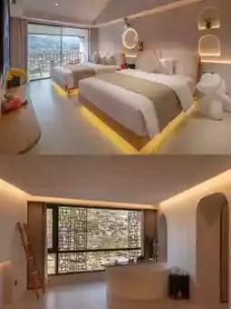 As soon as you enter the room, you'll be amazed by the luxurious atmosphere! Imported white ash furniture, Dyson hairdryer, L'Occitane toiletries, smart toilet, and a full house guest control system... Every detail exudes quality and style. The room is spacious and bright, with a soft and comfortable bed for a good night's sleep. Plus, there's a panoramic floor-to-ceiling window bathtub room, where you can enjoy the night view of the Miao Village while taking a bath. It's a real treat! 🛁🌟