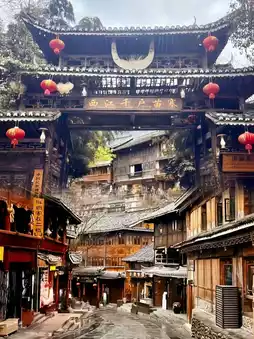 📍 Xijiang Qianhu Miao Village: This village is a well-preserved place showcasing the original ecological culture of the Miao ethnic group. It consists of five natural villages built along the mountains, making it the largest Miao village in China and even the world.