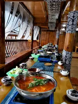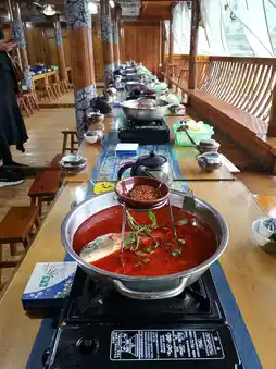 - Special long table banquet package (including tickets, sightseeing bus tickets and special long table banquet): 148 yuan for tourists from Guizhou Province and 103 yuan for tourists from outside the province. At the long table banquet, girls and boys in fancy dress will serve welcome wine. The main dish is usually sour soup fish, and there are six side dishes. There are also mountain streams and toast songs during the meal, which will allow you to immerse yourself in the Miao customs.