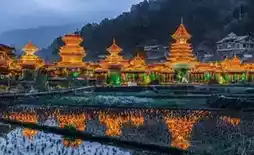 • Introduction: The world's largest Miao ethnic settlement, featuring over 1,300 stilted houses built along mountain slopes. At night, thousands of lights resemble fallen stars. Miao ancient songs, embroidery, and silver jewelry craftsmanship are listed as national intangible cultural heritage.
