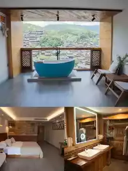 ⛺【Service Experience】: The hotel provides 24-hour butler-style service, assisting with luggage, route planning, and offering detailed transportation and sightseeing guidance from the scenic area ticket checkpoint to the hotel. Guests can also enjoy various Miao ethnic costume experiences, with complimentary Miao attire provided during their stay.