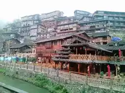 At dawn, the Thousand-Household Miao Village of Xijiang is veiled in an ethereal haze, evoking a scene from a fairy tale. Thousands of wooden stilted houses cascade down the mountainside, their dark tiles and upturned eaves subtly emerging and fading in the mist, enhancing the village’s timeless and mysterious charm. The gentle river flows quietly, mirroring the tranquility of the settlement. Strolling along the bluestone-paved paths and breathing in the fresh mountain air, visitors can immerse themselves in a serene and majestic atmosphere, far from the bustle of modern life—a truly unforgettable way to experience this iconic destination.