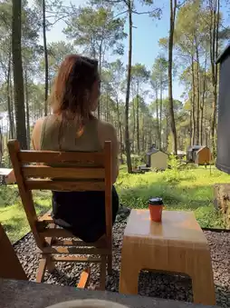 The cabins are compact but very well-designed – clean, comfortable beds, smart controls for lighting and blinds, and Bluetooth speakers for music. Each unit feels private, and waking up to tall pine trees right outside your window is refreshing. At night, the atmosphere is cozy, especially with the cool mountain air.
