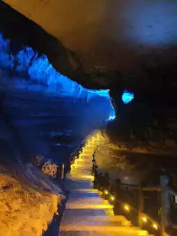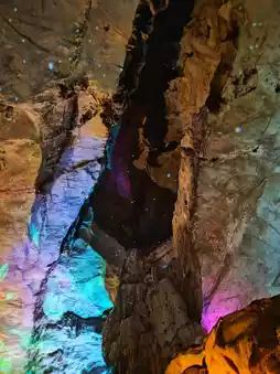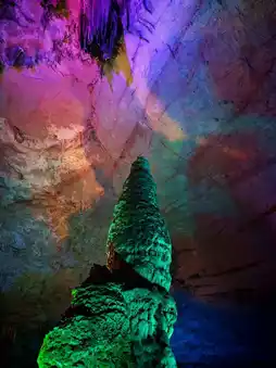✅ Crystal Curtain: Under blue-purple lighting, slender stalactites look like magical curtains, perfect for atmospheric photos✨