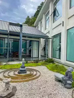 The homestay we stayed at this time was so nice, right next to the Leshan Giant Buddha. To the right as you enter is a spectacular cliff view, with lots of greenery in the courtyard, and the lobby has a modern minimalist style. 🎵 The music corridor is amazing!