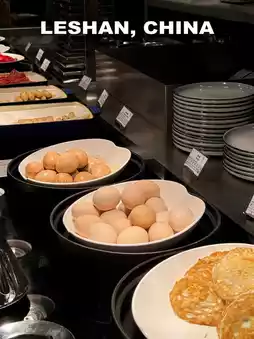 ☀️ HUALUXE Leshan breakfast spread hits different! Crispy croissants + Leshan's iconic tofu pudding & beef ka-bing 🍜. East meets West, all fresh off live stations. No need to queue—start days full and happy!#china #breakfast