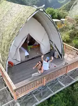 ✔️Only 12 tents—book early! Each comes with fridge, AC, hairdryer, pour-over coffee. Breakfast & dinner (BBQ/hotpot) provided.