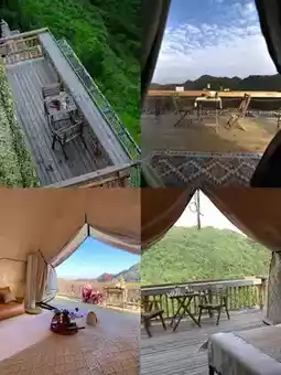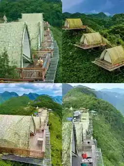 2️⃣ Cliffside Stargazing Tent: At night, lie back in your tent, draw the curtains, and take in a sky full of stars—pure romance! 🌌