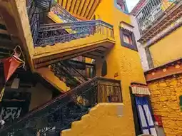 Amid the colorful chaos, I stumbled upon a fascinating scene—a traditional Tibetan photo shoot. A small studio on the street offered the chance to dress in elaborate Tibetan attire, complete with intricate jewelry and embroidered robes. Intrigued, I joined in. The photographer guided me through graceful poses, capturing the essence of Tibetan heritage against a backdrop of golden Thangka paintings and silk draperies.