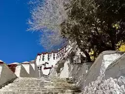 Walking up the steps (yes, they’re steep!) was a mini workout, but totally worth it. With every level, the view of Lhasa expanded, framed by blooming trees and snow-capped mountains in the distance. It’s the kind of view that leaves you quiet for a minute… just taking it all in.