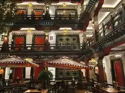 The hotel’s interior is distinctive and guests can wear Tibetan clothes for free. The atrium location is great for photography, and the upstairs promenade is also good. The lighting effect is also good at night.