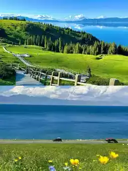 ——The "Sacred Lake" winding like a blue ribbon—a drone photography paradise! Rent a car to circle the lake and spot Tibetan antelopes!