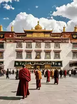 π Must-see highlights: The world-renowned 12-year-old Jowo Sakyamuni statue enshrined in the temple; the thousand-year-old butter lamp array flickering with the light of faith; and the golden roofs of the Jowo Khang main hall shimmering under the sun.