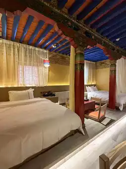 You can go to the coffee shop on the 3rd floor to take a picture of the celebrity Tibet Wall, enjoy the beauty of the magnificent Potala Palace, and visit their own Gesar Kapo Museum, which displays various precious artifacts.