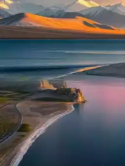 On the Tashi Peninsula, you can see the Nyenchen Tanglha Mountains reflected in the lake 🏔️
