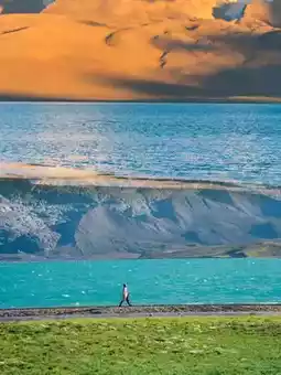 The lake water is a milky blue!! Get up close to the sacred Himalayan mountains~