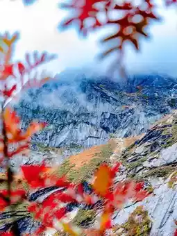 Beautiful all year round, with red leaves covering the mountains in autumn. The snow-capped mountains and lakes complement each other, as if you are walking into a painting.