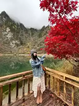 1. Moon Lake is indeed the most photogenic spot. You can also pick a few red leaves at the beginning as props.