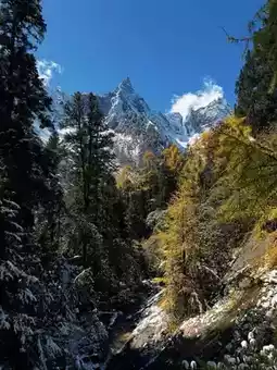 The surface of Longwanghai Lake is like a mirror, reflecting the snow-capped mountains and colorful forests, with red maples, golden birches, and green pines weaving a perfectly layered palette; the forests along Panyang Lake are fully dyed in autumn colors, and the lake water is as blue as a gem, every shot is a masterpiece that needs no editing. With some luck, you might encounter the rare sight of half the mountain covered in colorful forests and the other half in snow, with white snow lightly covering the branches, creating a charming contrast with the vibrant autumn colors.