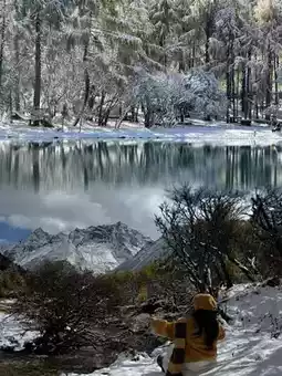 The best part is that there are still few people now! No need to squeeze for photos; just find a wooden boardwalk or by the stream, and you can easily capture the illusion of "owning the entire snowy scene." Wearing bright-colored jackets really stands out in the photos, and pairing with a red scarf creates layers with the snow and colorful forest.